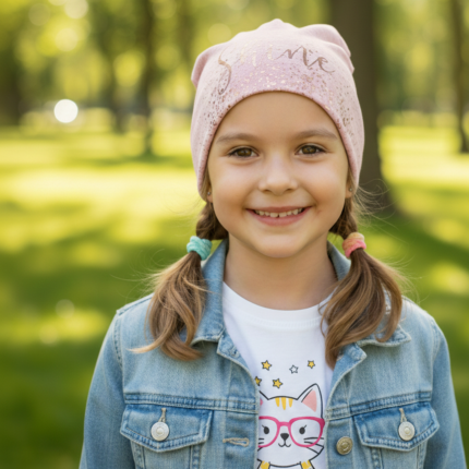 Bavlnená čiapka je dostupná v štyroch farbách- zvoľte číslo farby podľa obrázku. Veľkosť 48/50 obvod čiapky 42-54cm. Veľkosť 52/54 obvod čiapky 46-58cm.