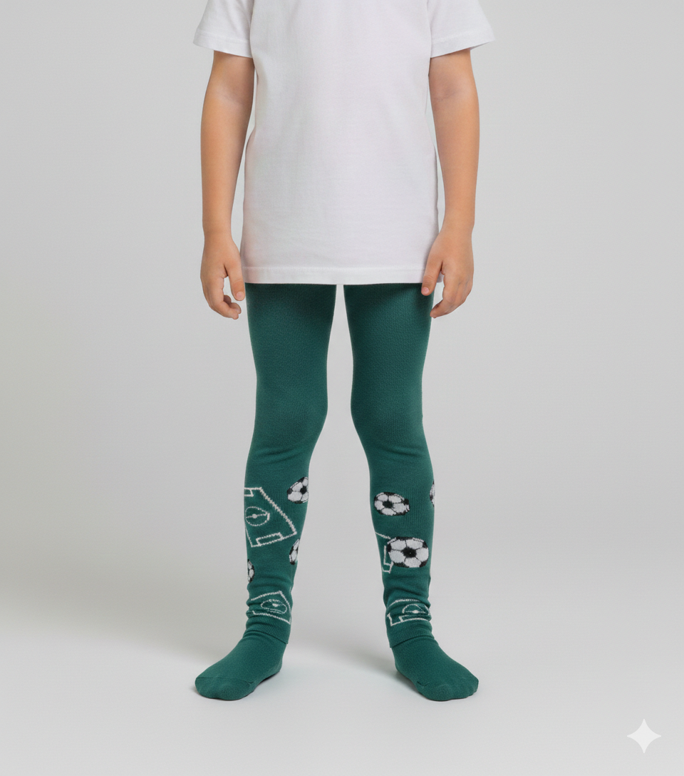 Chlapčenské pančuchové nohavice so vzorom futbalových bránok.