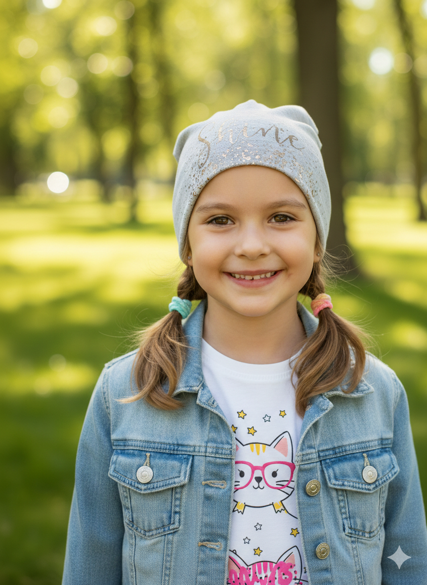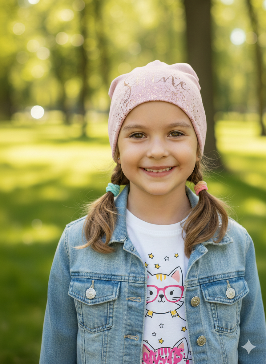 Bavlnená jednovrstvová poddajná čiapka mama a dcéra s nápisom Shine.