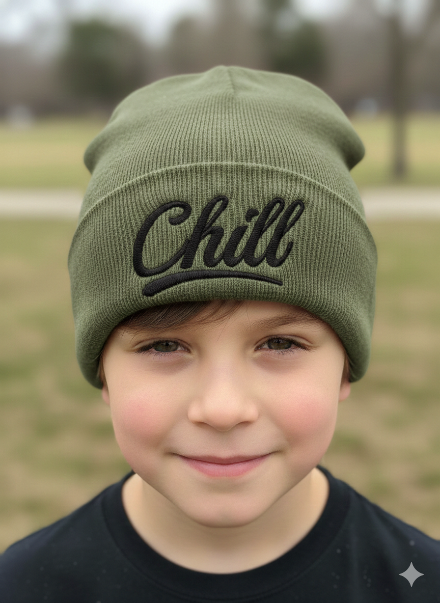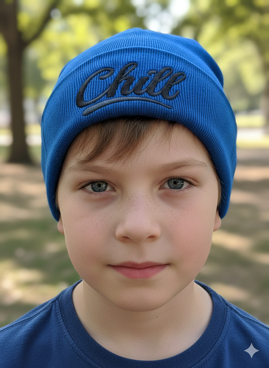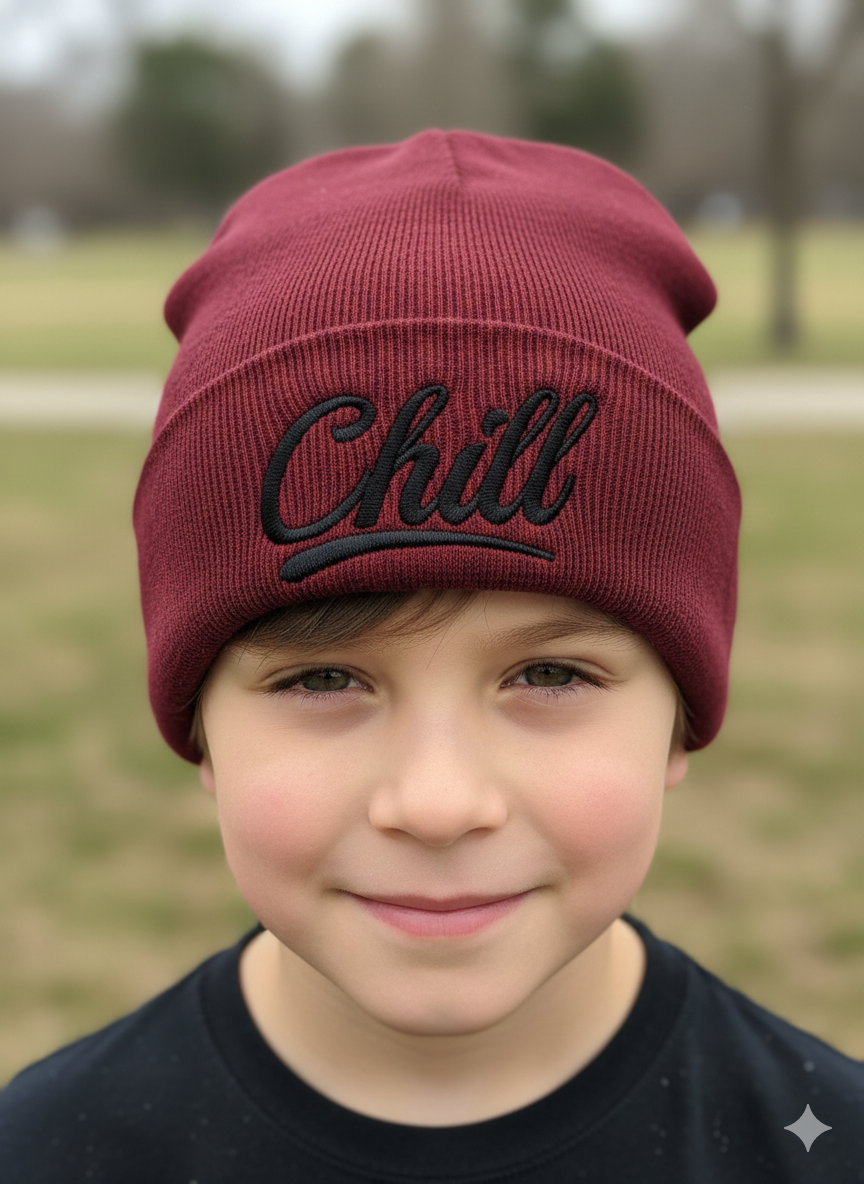 Prechodná čiapka s nápisom Chill vo rôznych farbách.