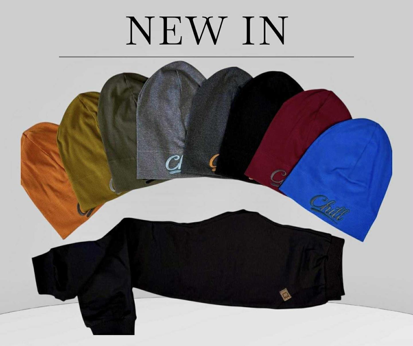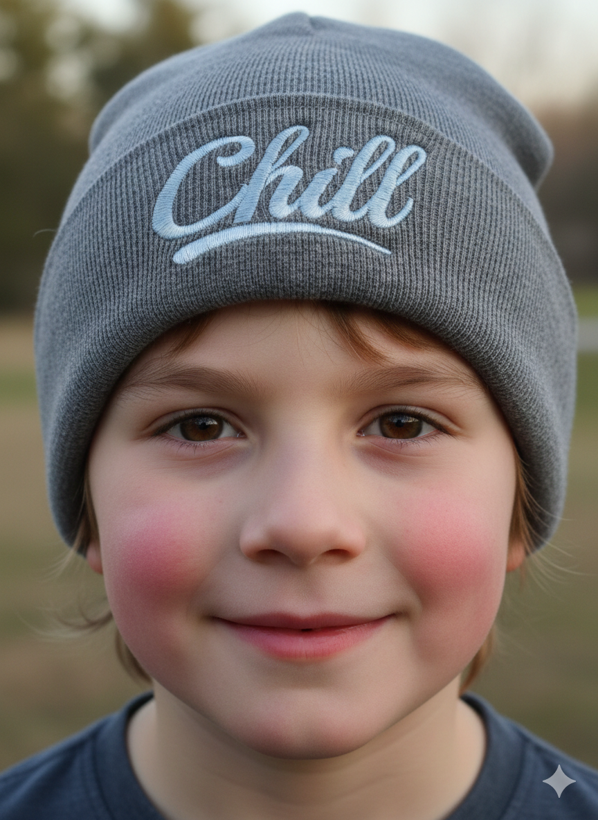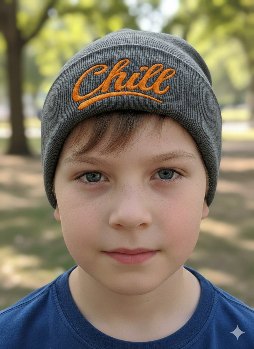 Prechodná čiapka s nápisom Chill vo rôznych farbách.